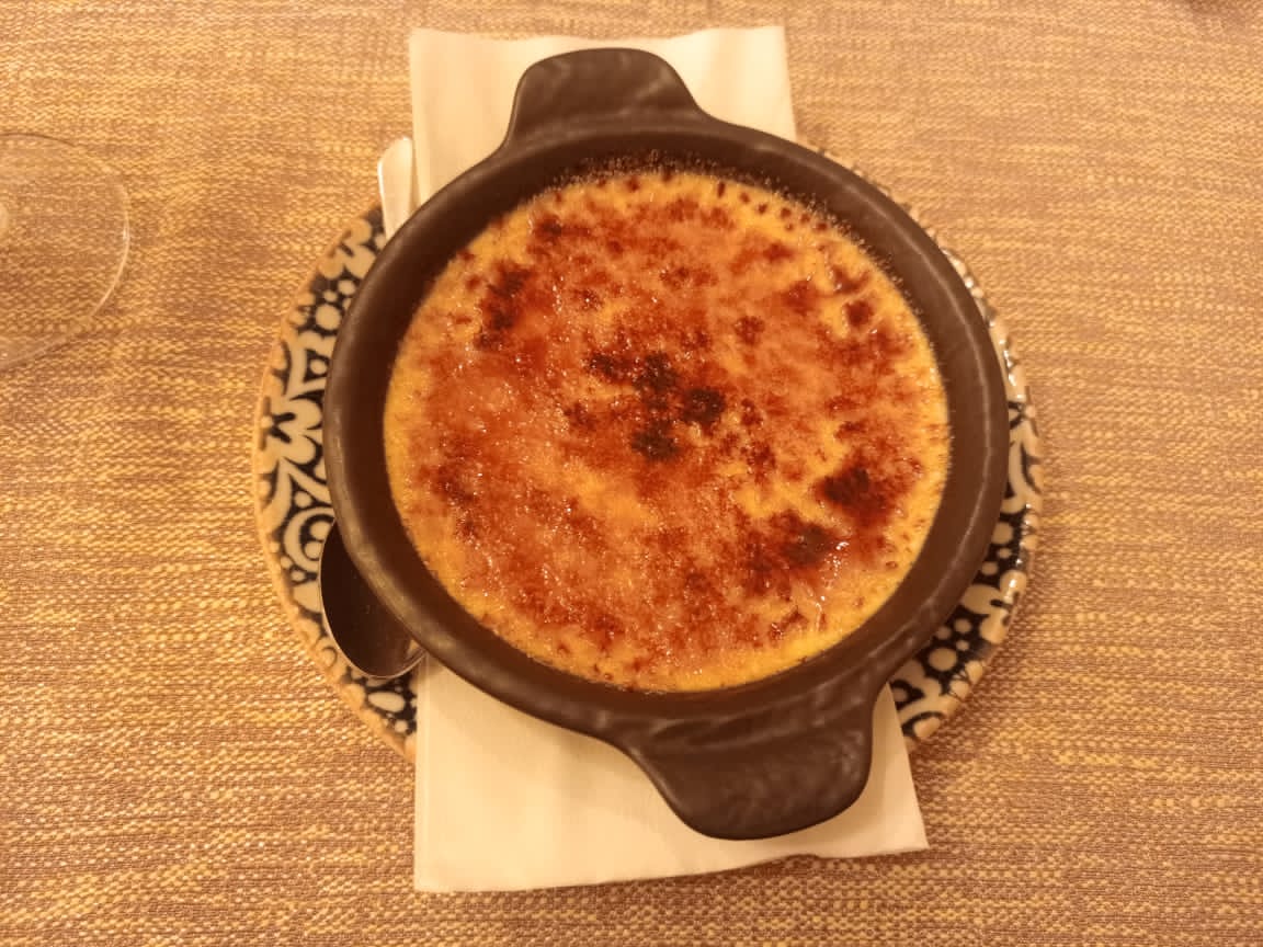 On the menu: Virgin Mojito Fraise, Fleur d’Amour as a drink, Poulet Basquaise, Gambas Breniel, Salade Thaï, Crème Brulée, Pana Cotta aux fruits rouges as starters, main courses and desserts.
